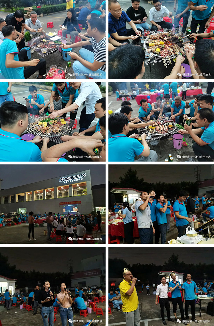 2021年11月3日傍晚,廣東博碩涂裝技術有限公司迎來了第三、第四季度員工生日會暨燒烤趴,大家齊聚一堂,歡歌笑語不斷。