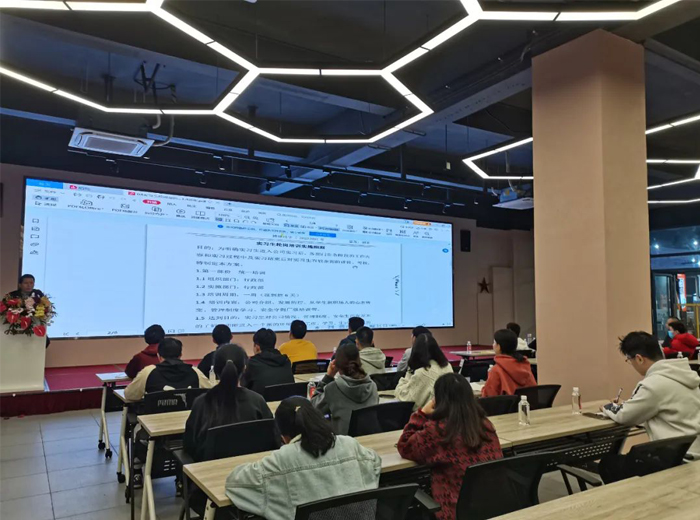 為了讓大家更快的、全方面的熟悉公司,從在校生轉(zhuǎn)變?yōu)槁殘鋈说乃季S模式,黃經(jīng)理相繼開展了《公司管理制度》、《工作流程》、《組織架構(gòu)》、《安全生產(chǎn)》、《職業(yè)防護(hù)》、《消防安全》、《輪崗培訓(xùn)制度》等一系列培訓(xùn),并通知大家每天寫工作總結(jié),每周開一次周例會,確保大家的實習(xí)效果達(dá)標(biāo)。