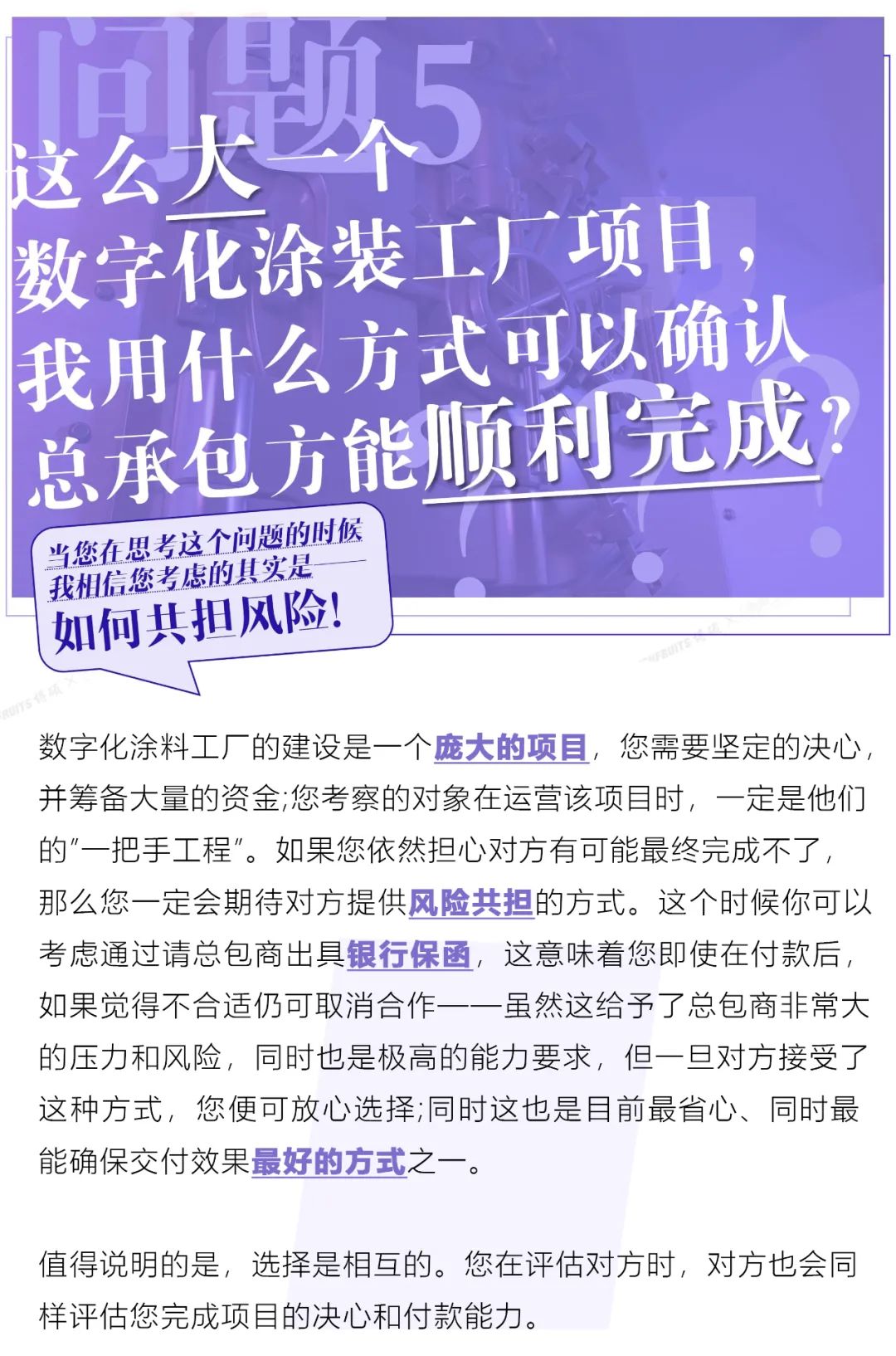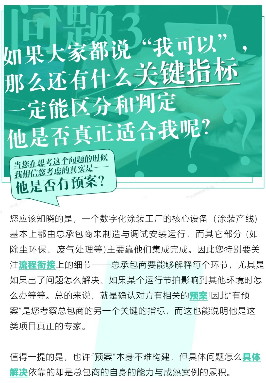 基于多元化材料,以及涂裝工藝本身的專業性,一個投資有效的數字化涂裝工廠和羅馬城一樣,并不容易建,更不是朝夕之間就能建立起來的。那么,有這樣需求的您在考慮上述的需求與解決方式的時候,您一定要從以下5件事先去思考和判斷。
