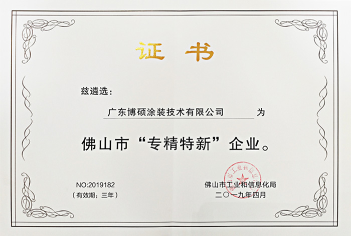 榮獲“佛山市涂裝一體化演講開發(fā)中心” “廣東省博碩涂裝一體化工程技術研究中心”