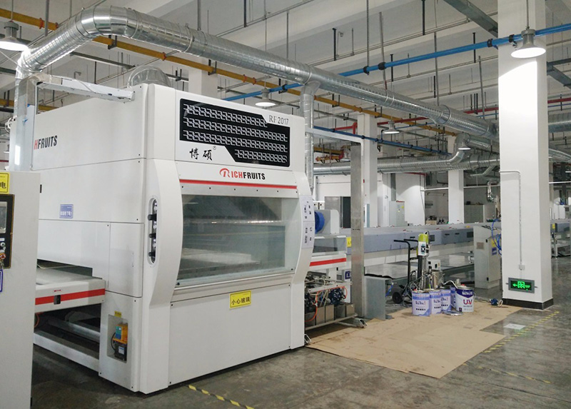 工藝要求 UV底漆、水性色漆、水性LED-UV面漆 產(chǎn)品種類 膜壓PVC櫥柜門板、定制衣柜、線條 產(chǎn)線數(shù)量 4條 設(shè)備特色 LED-UV固化系統(tǒng)、立體干燥房配1臺,待干45分鐘 生產(chǎn)產(chǎn)能 UV底漆噴涂線:1800m2/8h ( 生產(chǎn)員3人/線)