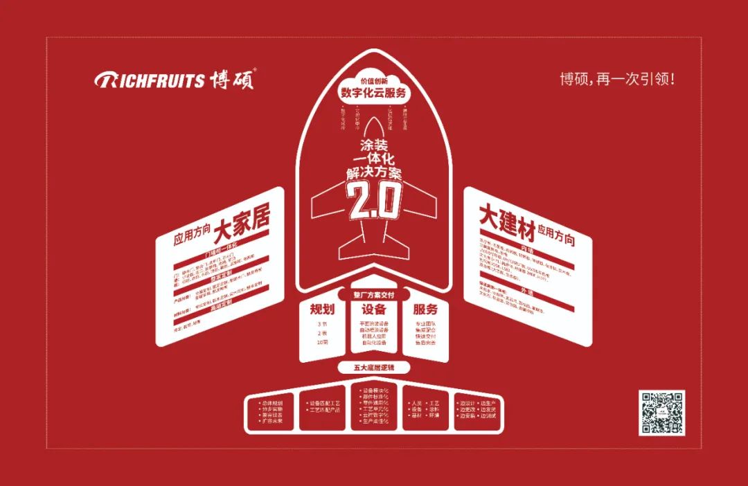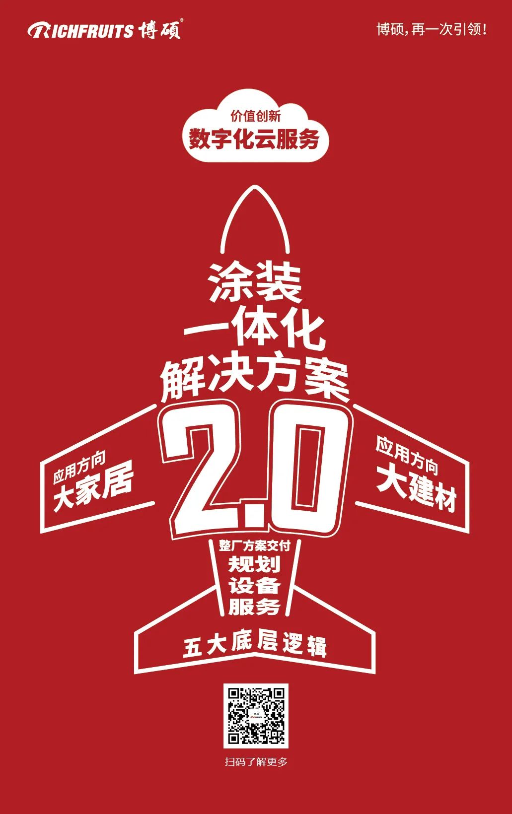 博碩涂裝一體化解決方案2.0主題畫面的中心便是數(shù)字“2.0”,預示著這是一個