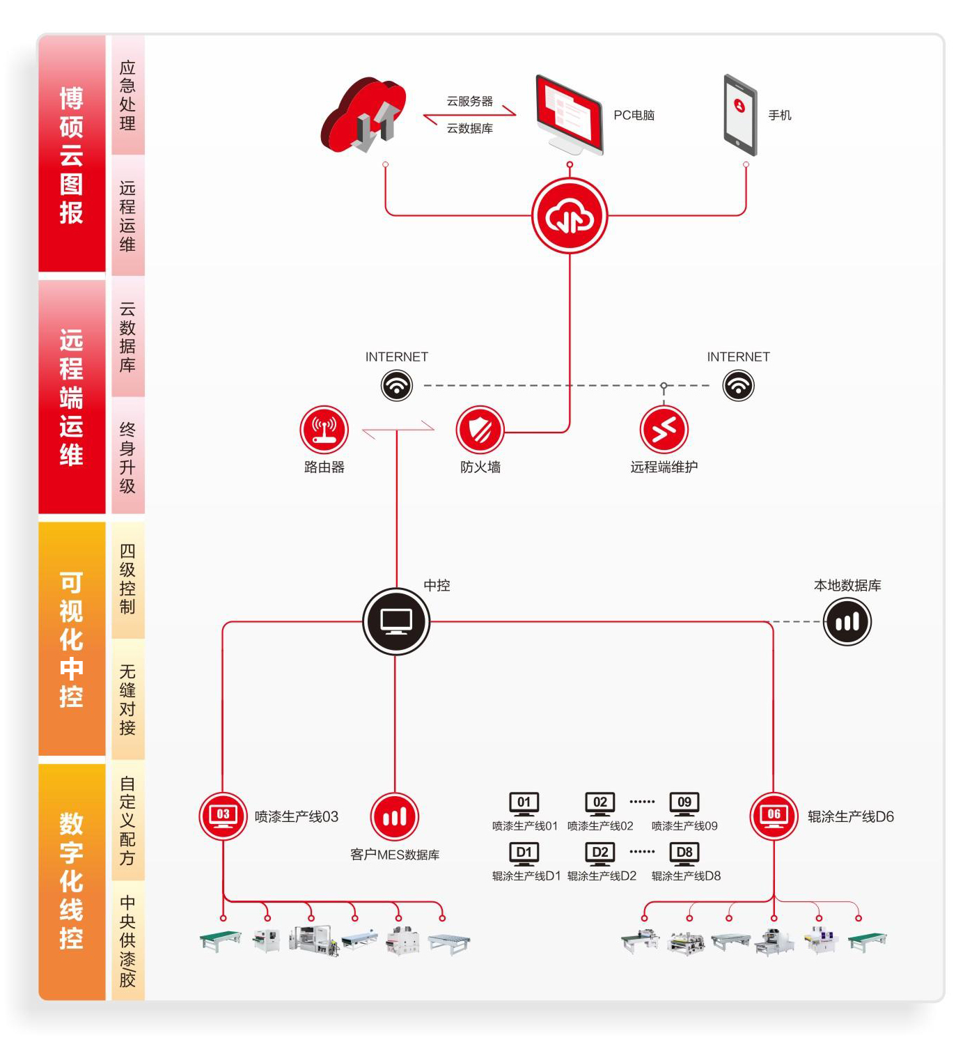 數(shù)字化云服務”,它包括:數(shù)字化線控、可視化中控、遠程端運維、博碩云圖報,是一整套完整的數(shù)字化、智能化體系。