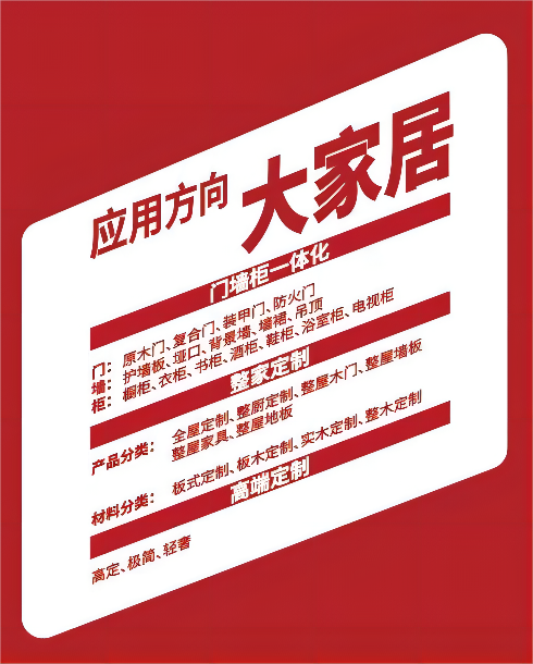 大家居”領域的應用:門墻柜一體化、整家定制、高端定制;還實現(xiàn)了在“