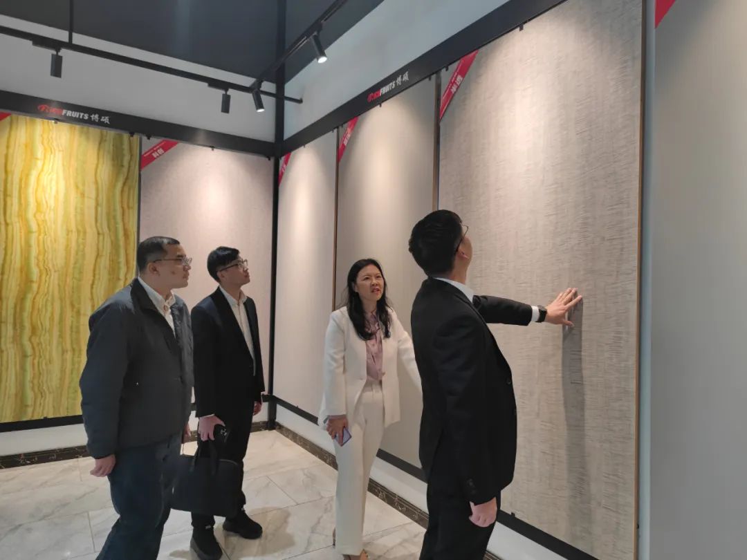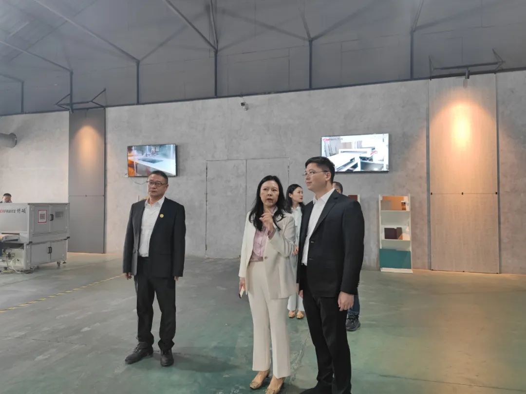 劉書記一行首先對(duì)博碩的廠房外墻、生產(chǎn)車間、涂裝一體化智能體驗(yàn)館進(jìn)行了視察。博碩廠房外墻是博碩自主研發(fā)的涂裝工藝及設(shè)備應(yīng)用在硅酸鈣板上,制作成的保溫裝飾一體板,不僅實(shí)現(xiàn)了仿各種花崗巖的圖案,還達(dá)到環(huán)保、節(jié)能的效果,推動(dòng)了“中國(guó)裝配式建筑”的發(fā)展,實(shí)現(xiàn)了住宅產(chǎn)業(yè)化,再進(jìn)入生產(chǎn)車間,更加深入了解博碩涂裝的整體體系以及戰(zhàn)略布局。