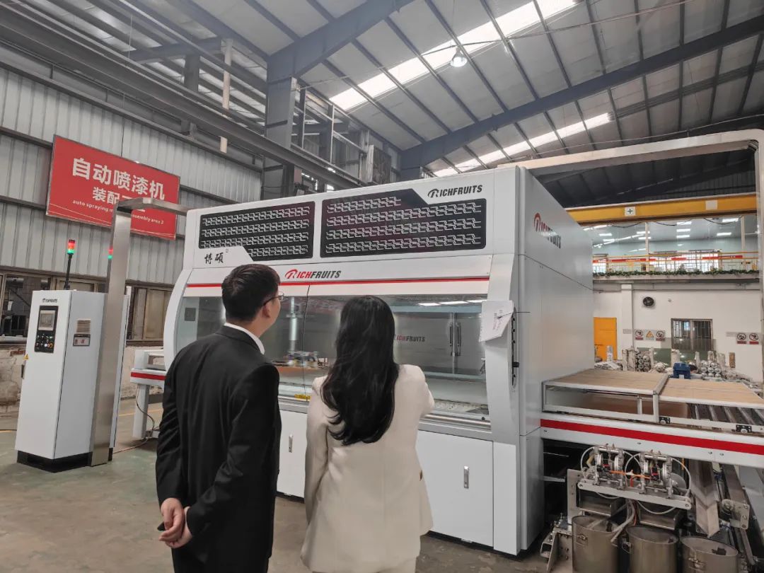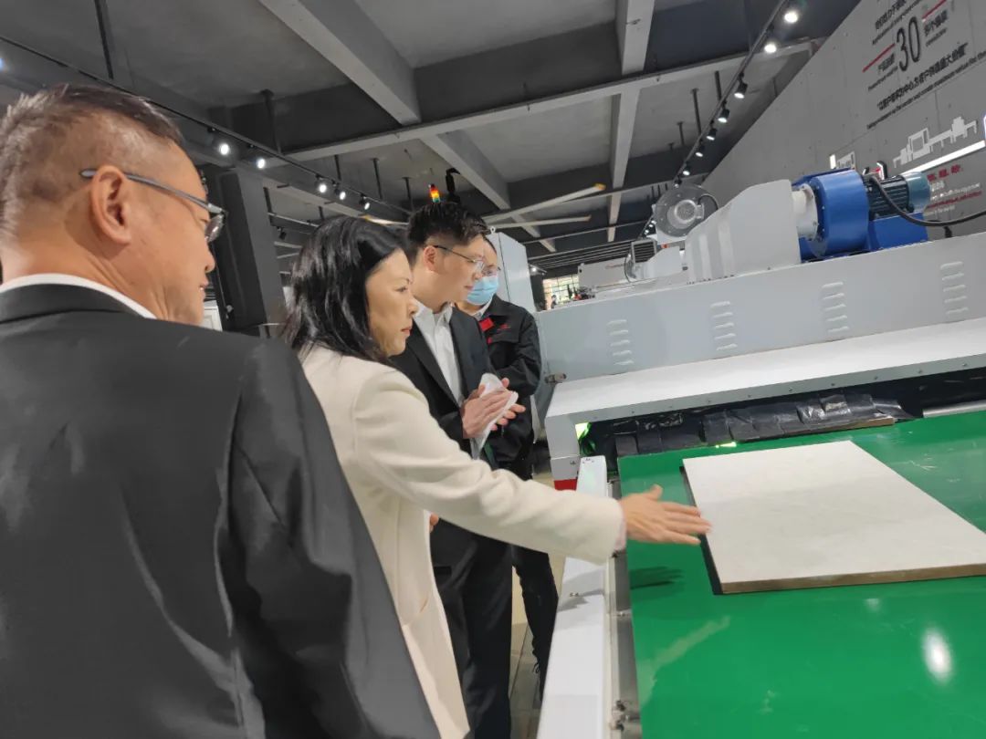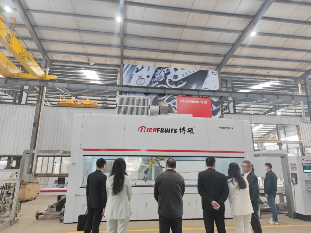 再一同體驗(yàn)了“涂裝智能生產(chǎn)線”準(zhǔn)分子膚感板的生產(chǎn)過程,從進(jìn)料到出成品,感受到準(zhǔn)分子膚感板如嬰兒般皮膚細(xì)膩的觸感。通過現(xiàn)場(chǎng)感受涂裝設(shè)備在效率、智能、環(huán)保、節(jié)能方面的先進(jìn)性,劉書記對(duì)博碩在技術(shù)研發(fā)的投入及設(shè)備的智能、環(huán)保、節(jié)能方面的顯著成效給予了充分的肯定和高度的贊揚(yáng),對(duì)博碩未來及長(zhǎng)遠(yuǎn)發(fā)展非??春茫瑫r(shí)也做出了相關(guān)的工作指示。