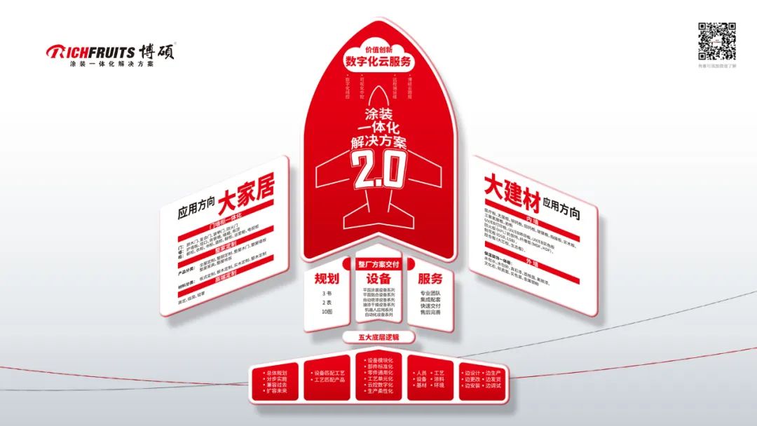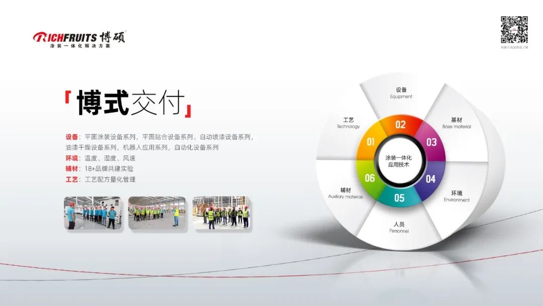剛才談到三條生產(chǎn)線,實際上買生產(chǎn)線很容易,但要快速做出好產(chǎn)品還要遇到材料、工藝等一系列問題,所以博碩就提出涂裝一體化應(yīng)用技術(shù)六要素:工藝、設(shè)備、基材、環(huán)境、人員、輔材。今天主題整家化配套,痛點在快速交付,博碩過去20年的經(jīng)驗積累了大量的工藝參數(shù),形成了工藝配方。量化管理快速出產(chǎn)品,這就是博式交付。