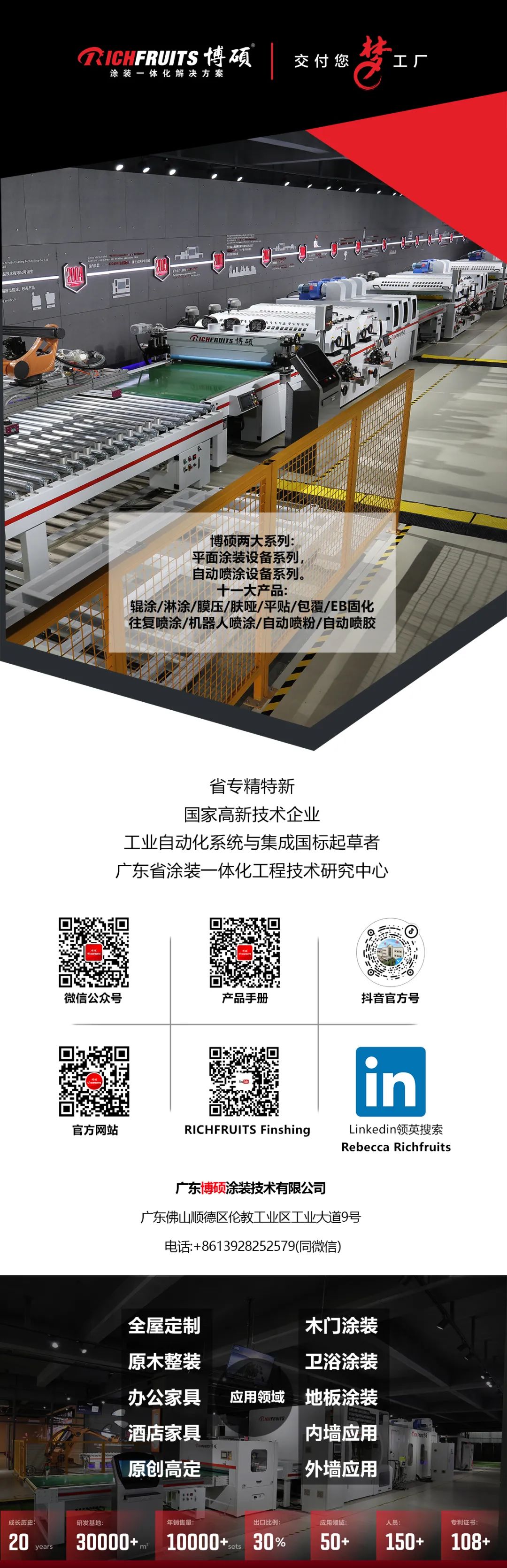 他早期是做油漆的,成都老板找我們買涂裝線這事被亞士知道了。就立馬聯(lián)系我們,各自飛到成都參觀應(yīng)用工廠,接著就一起飛回到博碩定了整線,從底到面一氣呵成。說實話,我們被這種簡單粗爆的決策震驚了,此時我們心里非常擔(dān)心產(chǎn)品能否滿足功能需求。經(jīng)歷了各種涂層測試,附著力測試,硬度測試,設(shè)備不斷進行調(diào)整,膠輥和噴槍各種型號各種品牌換了又換。幾十次的測試過后,時間已經(jīng)過去了8個月,終于研制出適合各種場景的產(chǎn)品,亞士選了其中幾款上市推廣,一炮打響。后來也因為做這些產(chǎn)品,亞士成功上市?,F(xiàn)在他們?nèi)债a(chǎn)能20000平。
