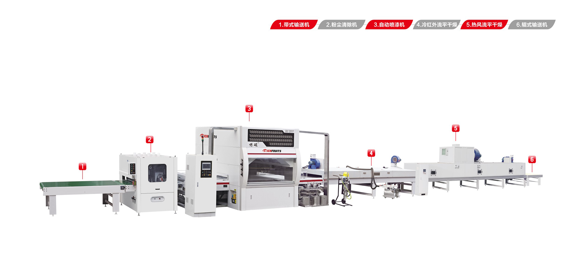 適用于板式家具、實木門、櫥柜門、工藝品、裝飾板、硅酸鈣板、玻鎂板、水泥纖維板的板式加工件的平面和四個側邊進行高質量、大批量連續(xù)噴漆。