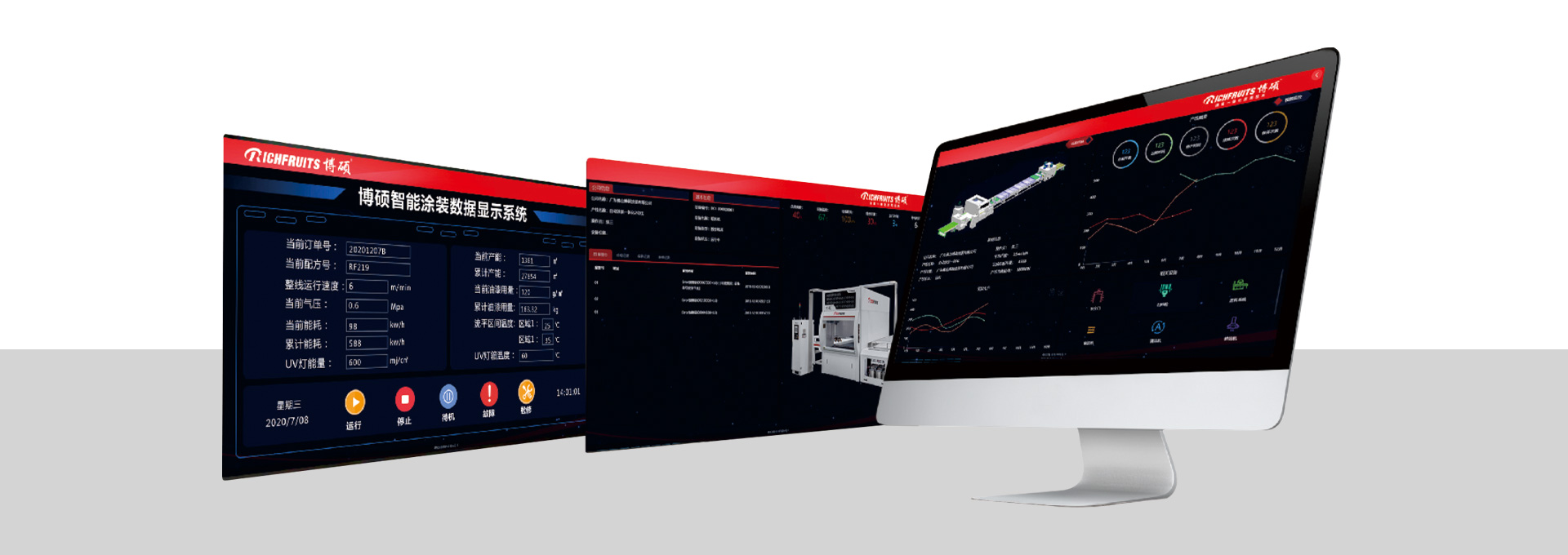 集控臺操作界面能顯示本生產線各UV固化設備各光源的能量消耗模擬值,并根據模擬值協調。